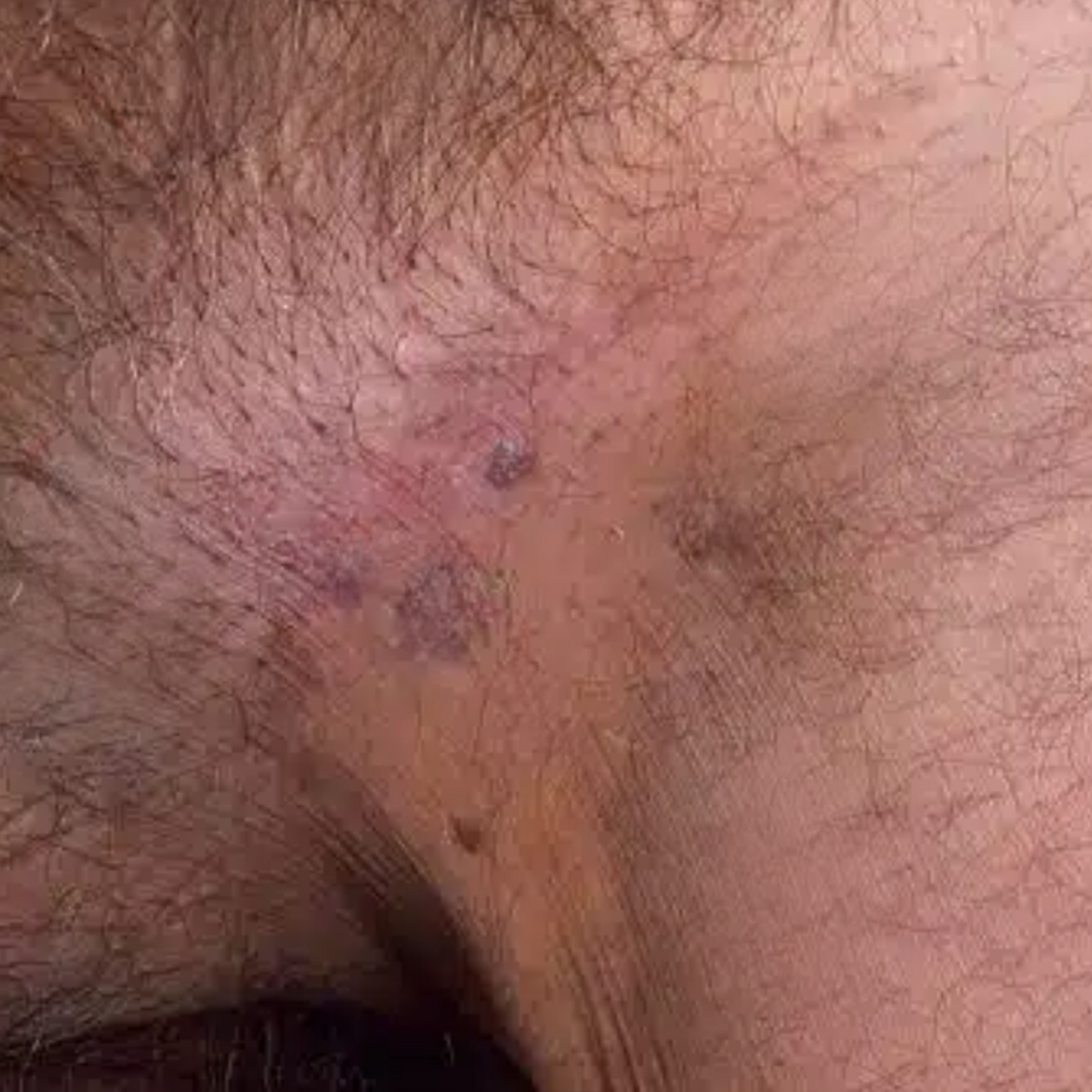 ❌ Flesh-colored, gray, or pink growths on or around the genitals, anus, or groin.